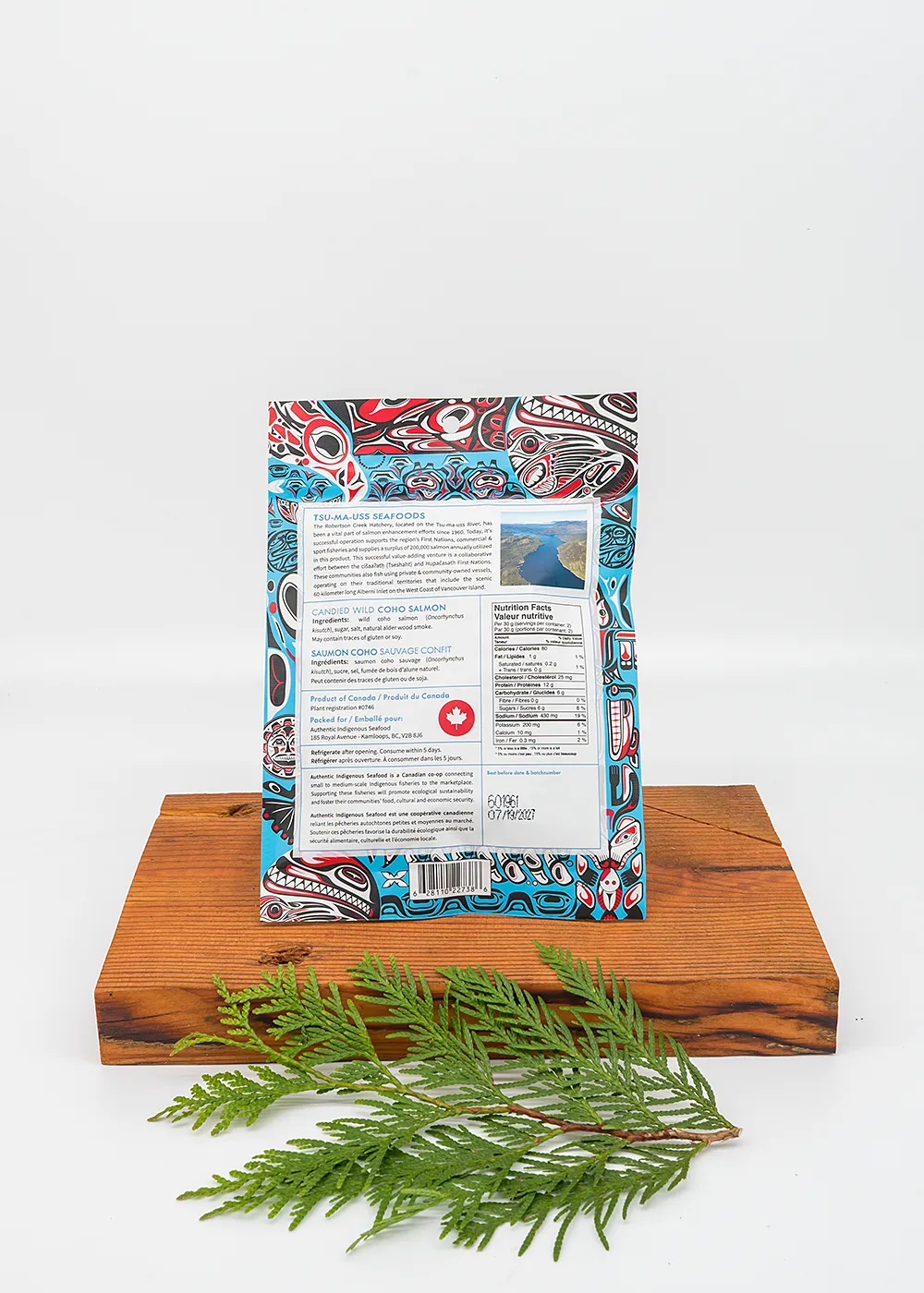 Each pack contains 24 grams of protein, making it a great snack for backcountry activities and a healthy addition to your favorite recipes. The packaging features First Nations illustrations that reflect cultural heritage.