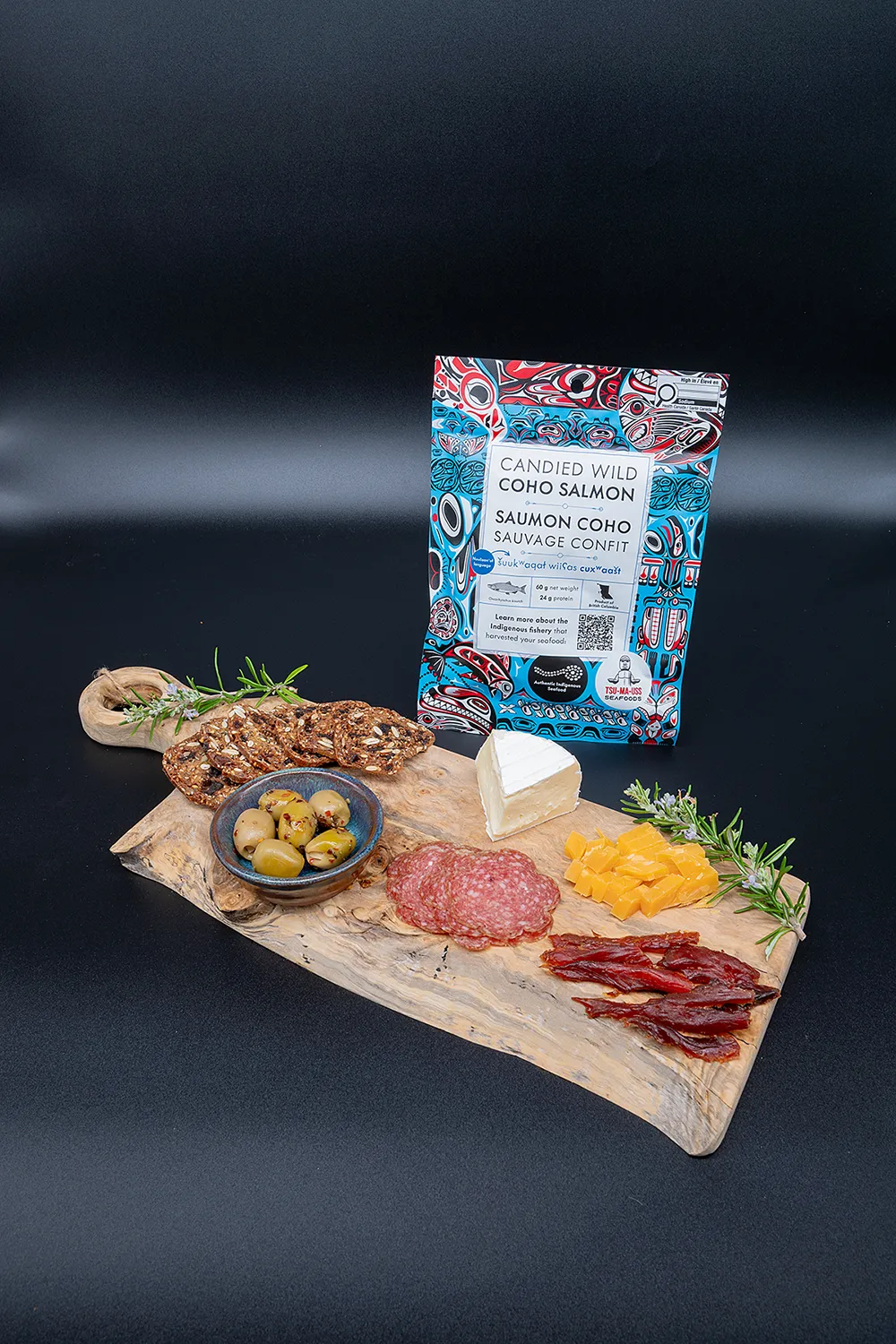 Enjoy our Candied Wild Coho Salmon, made from skinless, boneless fillets that are deliciously smoked for a unique taste. Each 60 g (2 oz) pouch is shelf-stable and resealable, making it easy to enjoy anytime.