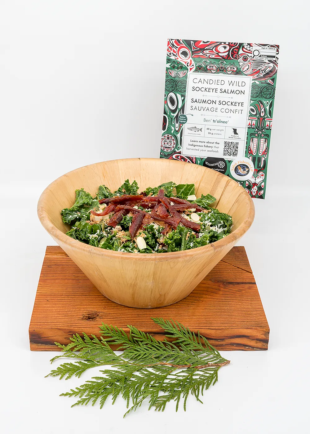 Each pack contains 26 grams of protein, making it a great snack for backcountry activities and a healthy addition to your favorite recipes. The packaging features First Nations illustrations that reflect cultural heritage.