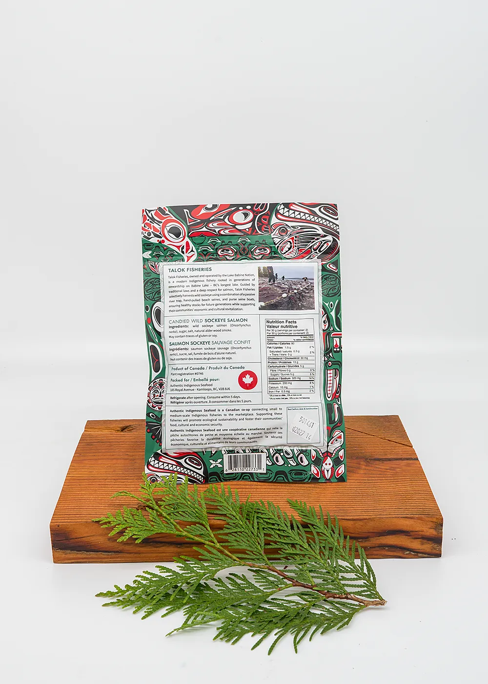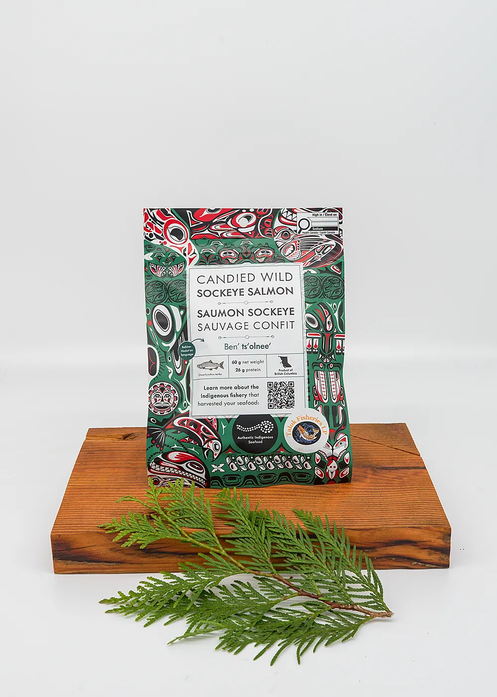 All of our products feature a QR code that, when scanned, reveals the Indigenous fishery that sustainably harvested your seafood.