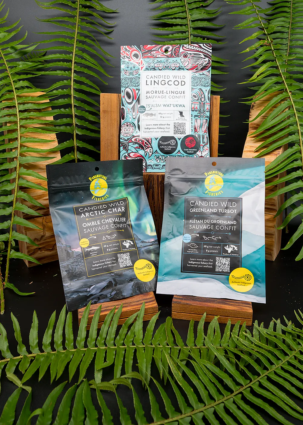 Discover the magic of the Northern Lights with this exclusive selection of candied seafood! Featuring premium Greenland Turbot, Arctic Char, and Lingcod, each piece is crafted and naturally smoked for a sweet, savoury taste of the North. Perfect for sharing, gifting, or treating yourself to a true northern delicacy—experience the unique flavours and traditions of Canada’s pristine waters and Indigenous communities in every bite.
